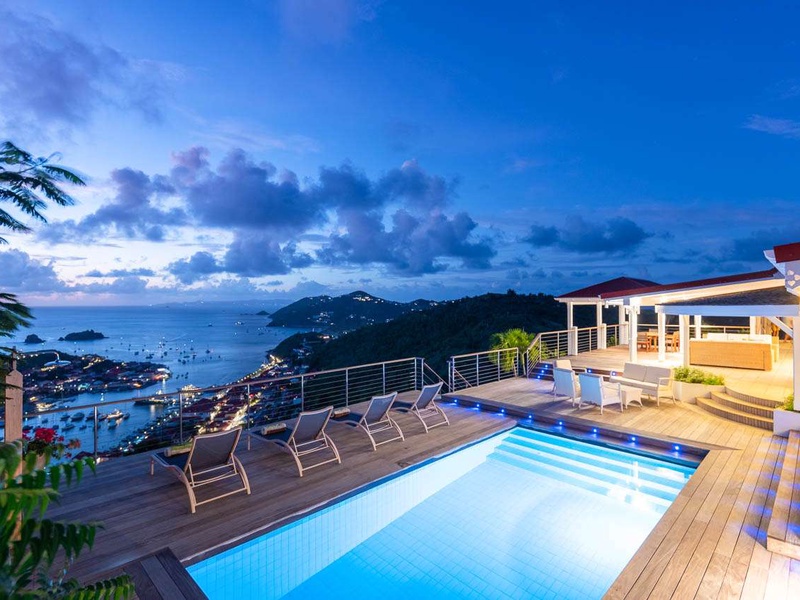 Nestled in the hills above Gustavia, surrounded by lush recently redesigned gardens, this vil...