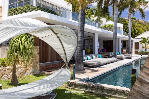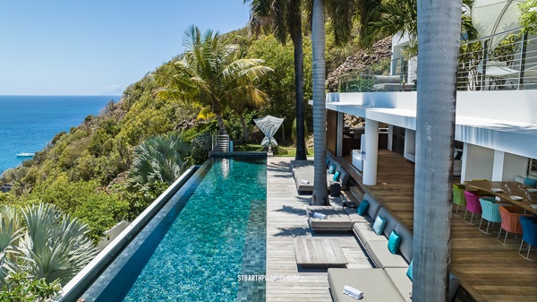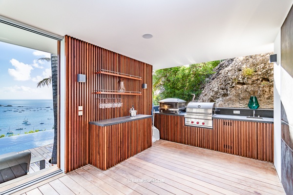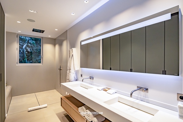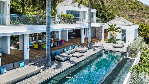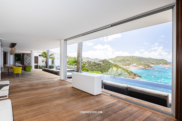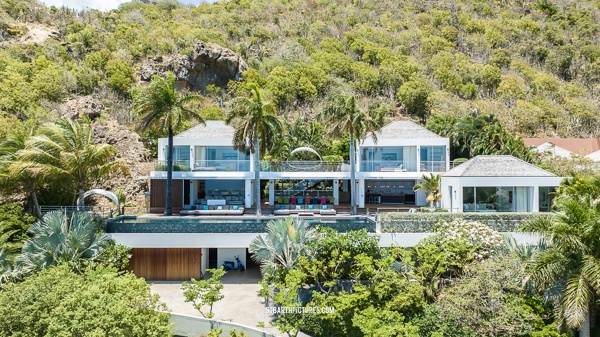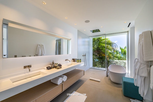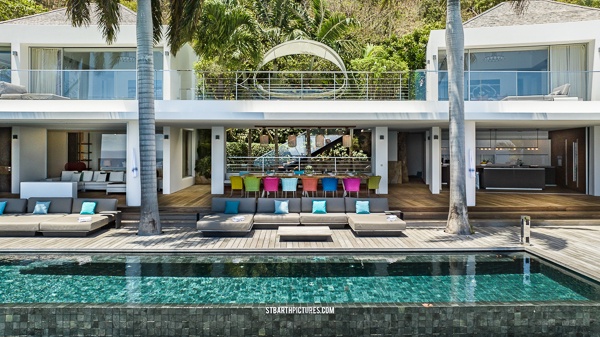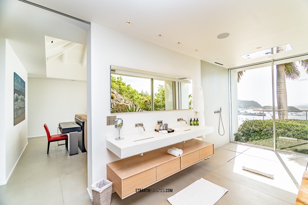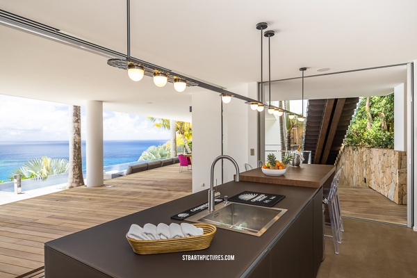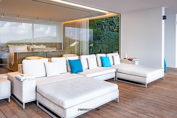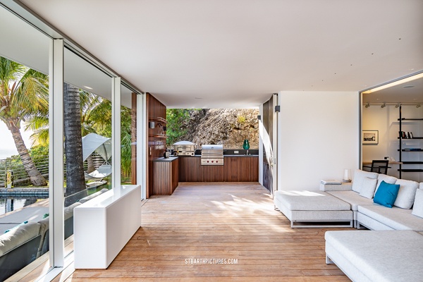 Natural stone gives the house a unique design. The spacious indoor living area features incredible artwork and ample seating areas. The living area with glass walls can be closed off and air-conditioned or opened to the enormous pool terrace. ...