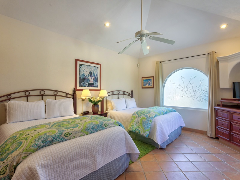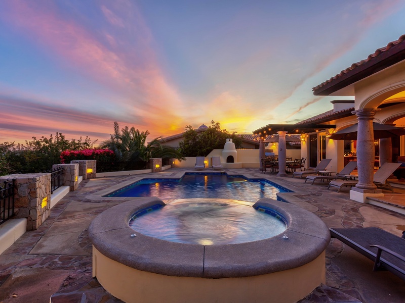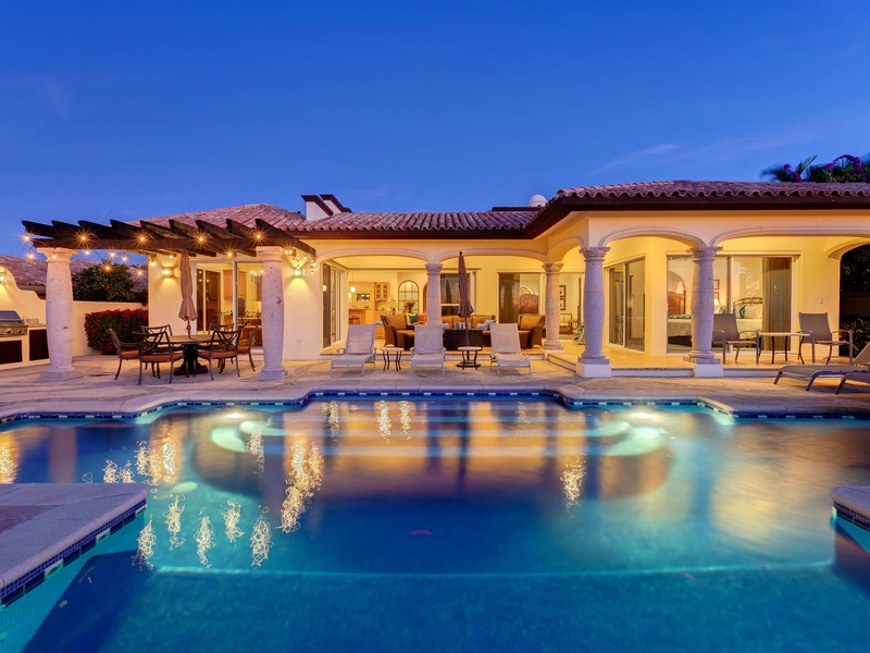 Mission-style architecture, desert-inspired landscaping, and warm-hued stucco greet you, while inside, modern conveniences and thoughtful design ensure a comfortable stay. Each bedroom offers privacy, while the outdoor highlights—a pool, wate...