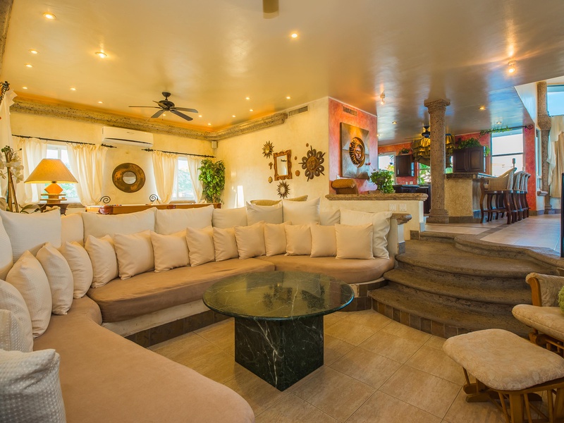 Located in the private neighborhood of Pedregal in Cabo San Lucas, 7-bedroom Villa Alegria is an attractive vacation rental offering beautiful views, a spacious floor plan, comfortable bedroom suites, a breathtaking pool terrace and a host of amenities to make your stay memorable. Whether you’re looking for a family vacation with convenient proximity to downtown Cabo just a short drive away or a relaxing retreat with friends, this villa will offer you the perfect home base for an unforgettable e...