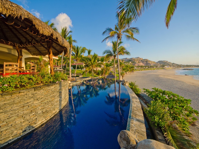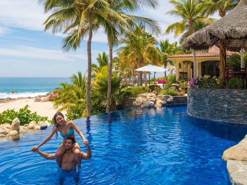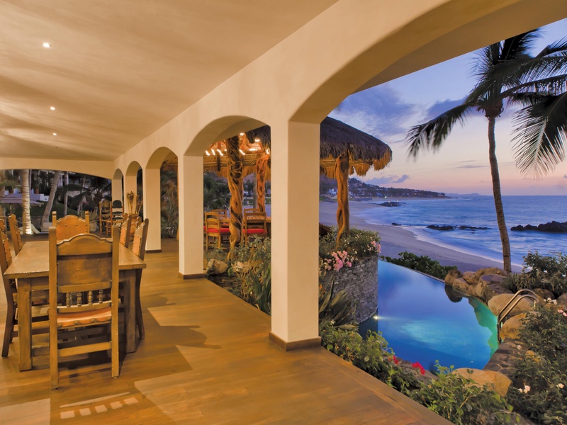 Located in Los Cabos, this villa offers extensive living areas with hacienda-style decor, top-of-the-line amenities and an oceanfront pool terrace with breathtaking views of the Sea of Cortez. Inside, this villa includes teak flooring, marble and tile counters, arched and wood-beamed ceilings, as well as a rich interior with vibrant artwork. Not only does this villa offer wonderful spaces for group gathers, but it also includes six suites, each with private entrances and en suite baths and tubs....