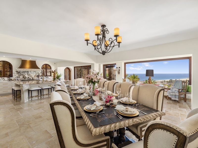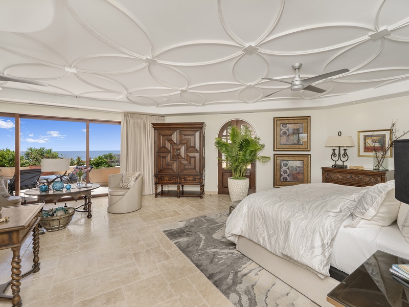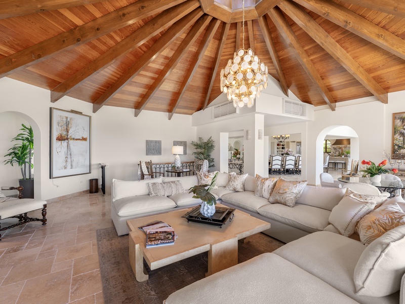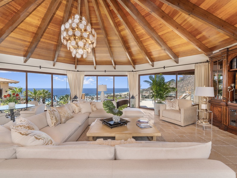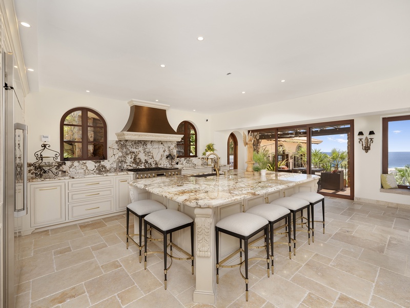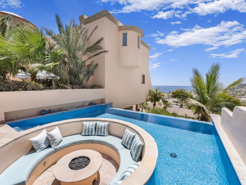 Step outside to discover the villa’s large outdoor spaces, where two pools, a jacuzzi, and expansive terraces await. Relax by one of the two fire pits as you take in the enchanting ocean vistas, or enjoy the patio dining area. Beautifully...