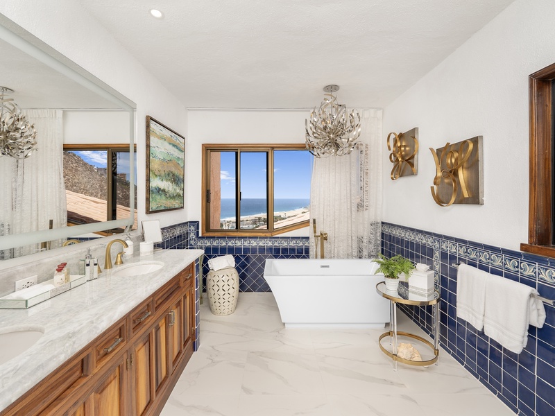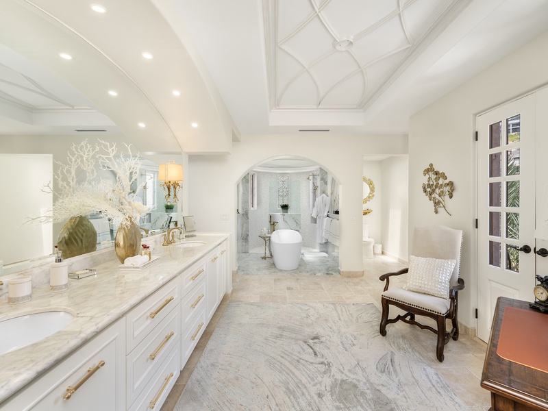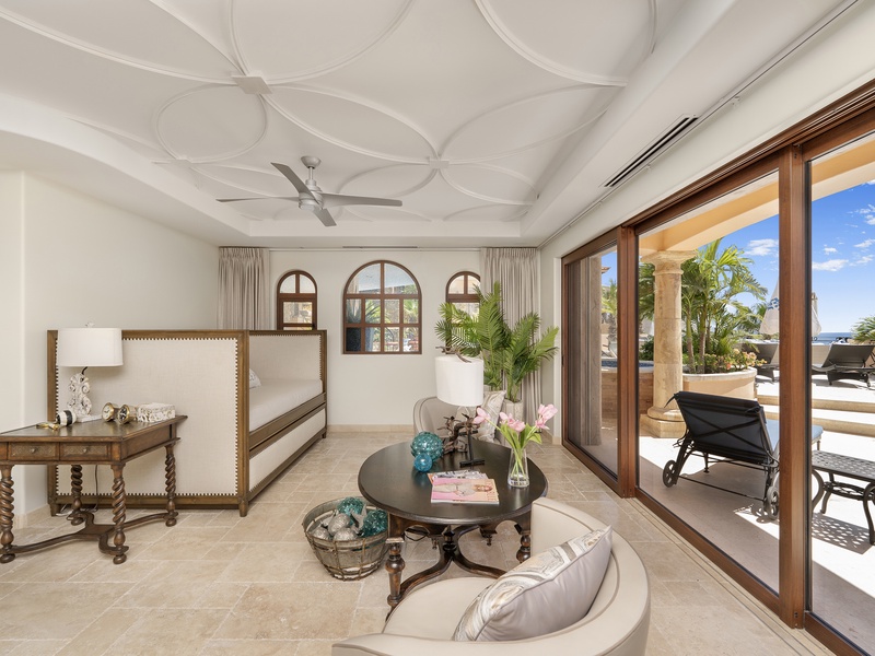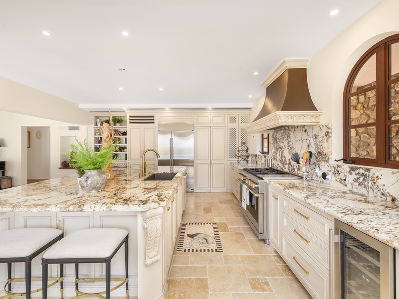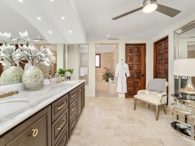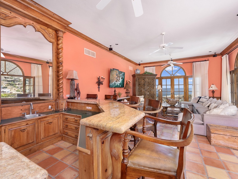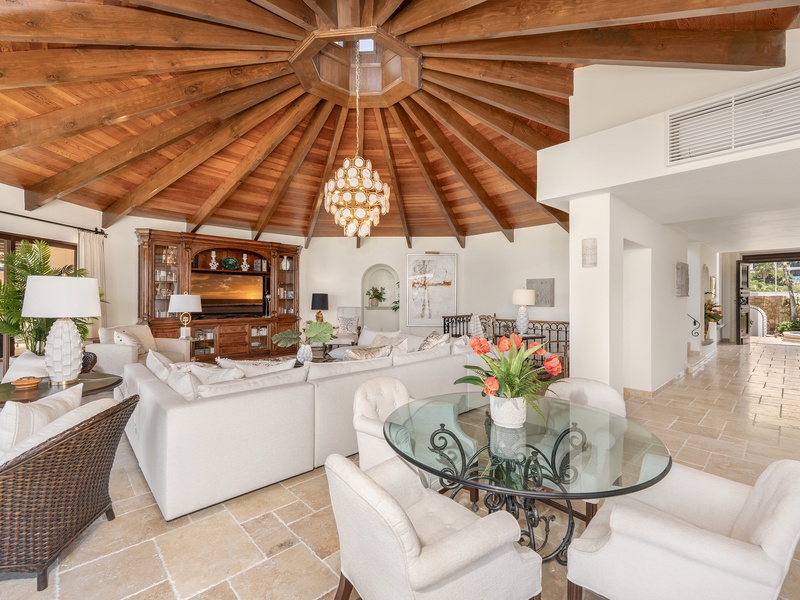 Step outside to discover the villa’s large outdoor spaces, where two pools, a jacuzzi, and expansive terraces await. Relax by one of the two fire pits as you take in the enchanting ocean vistas, or enjoy the patio dining area. Beautifully...