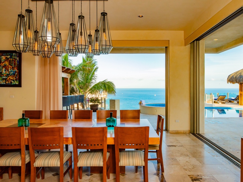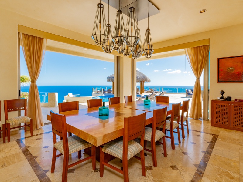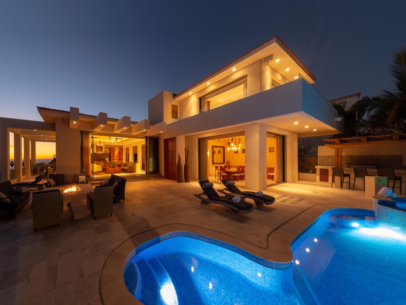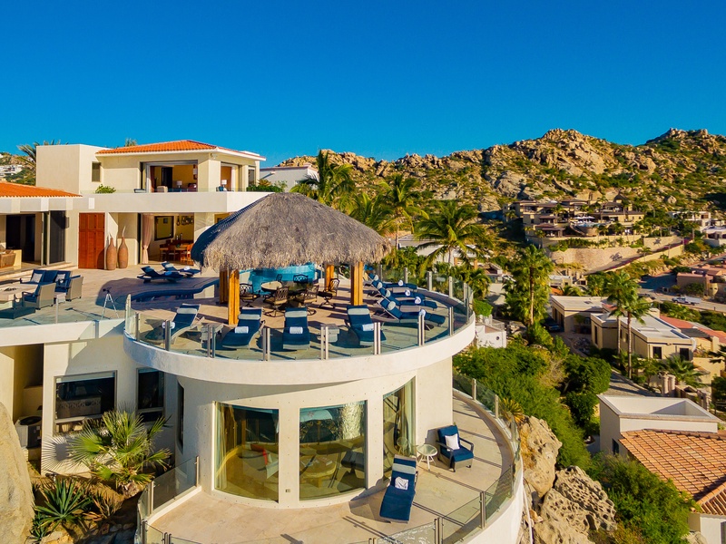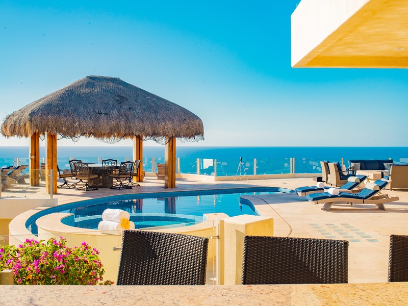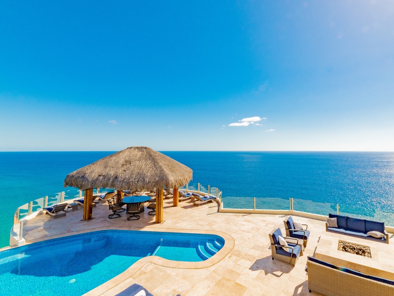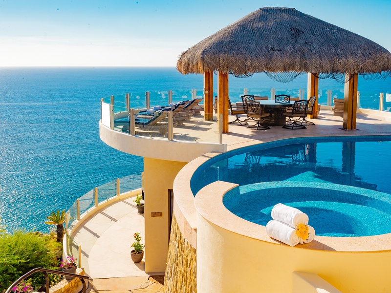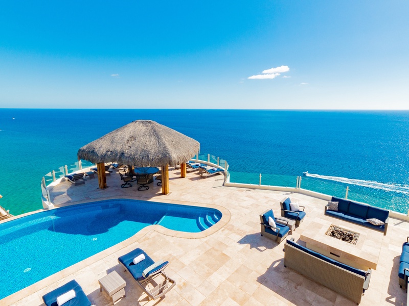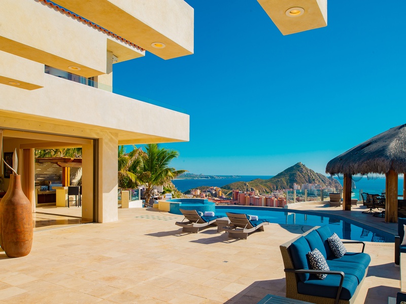 Located high on a cliff overlooking Land’s End, where the Sea of Cortez meets the Pacific Ocean, Villa Peñasco offers ultimate natural beauty and first-class luxury. Inside, the villa offers a state-of-the-art gourmet kitchen, a large dining room with seating for 16, a media room and fitness room. The large dining room fully opens to the main terrace. Step onto the main terrace and appreciate the magnificent ocean views. The large terrace features an infinity pool, Jacuzzi, palapa, bar and barbe...