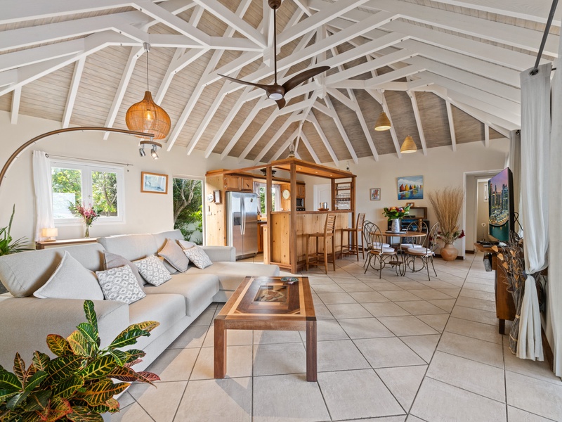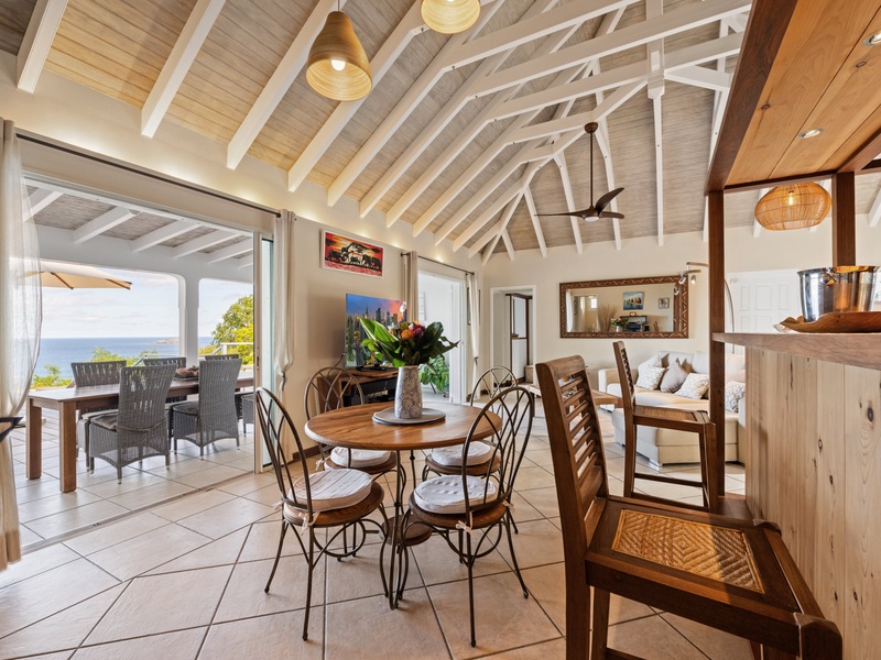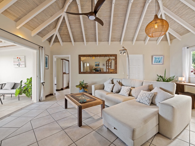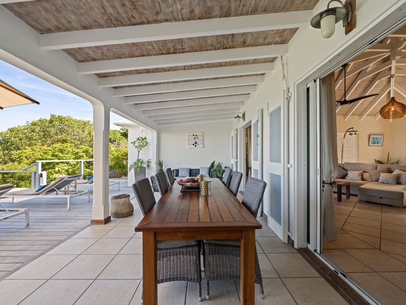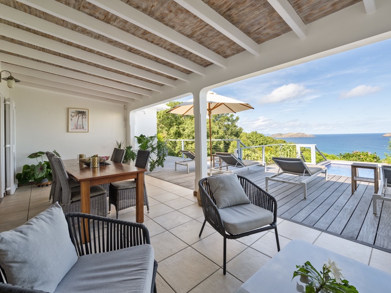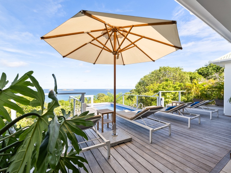 With a beautiful location in Petite Saline, Villa Villon enjoys sweeping views over Lorient Bay. In the distance, the offshore islands of Île Toc Vers, Île Frégate, and Île Bonhomme. The beach at Lorient is a short drive away, as are the shops and restaurants of St. Jean.