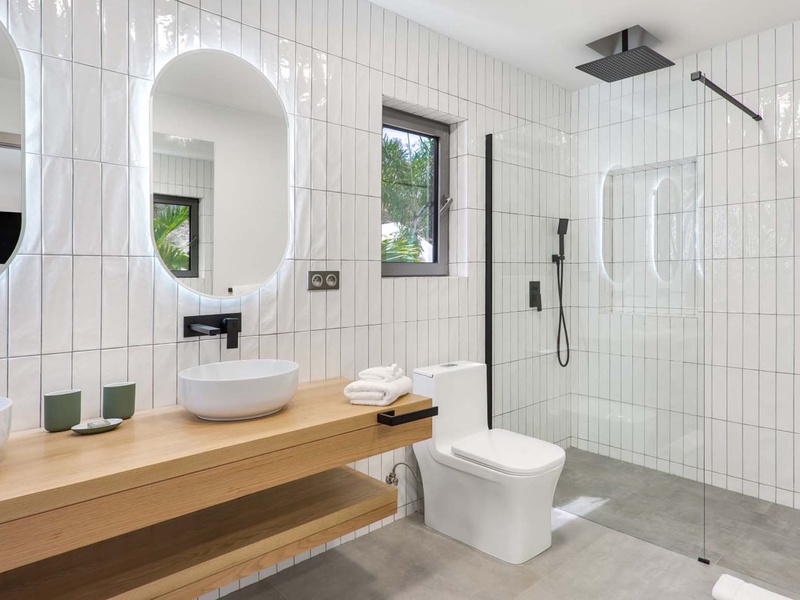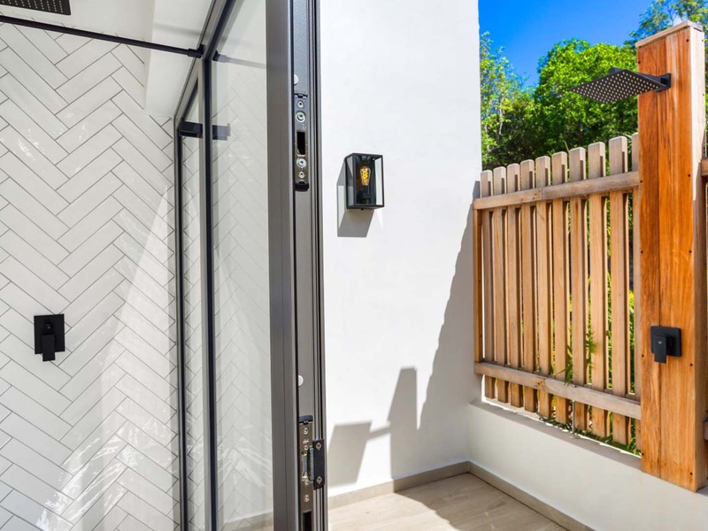 The bedrooms are generously sized, and each has its own private bathroom, complemented by an outdoor shower. They also feature air-conditio...