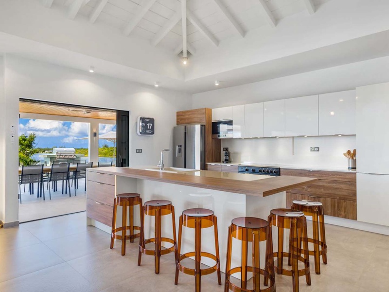 The kitchen is exceptionally well-equipped, boasting a sizable oven, microwave, dishwasher, refrigerator, and a Nespresso machine. Additionally, a laundry room is available.