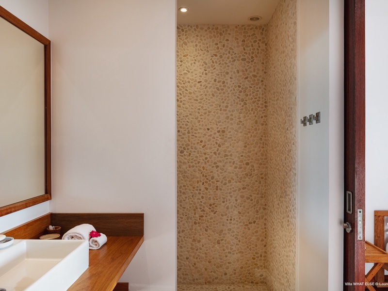 Inside, the property is effortless and cool, with gorgeous wood surfaces and accents imported from Bali complementing the modern design. A flowing, open-plan concept connects the interior with generous outdoor living spaces.