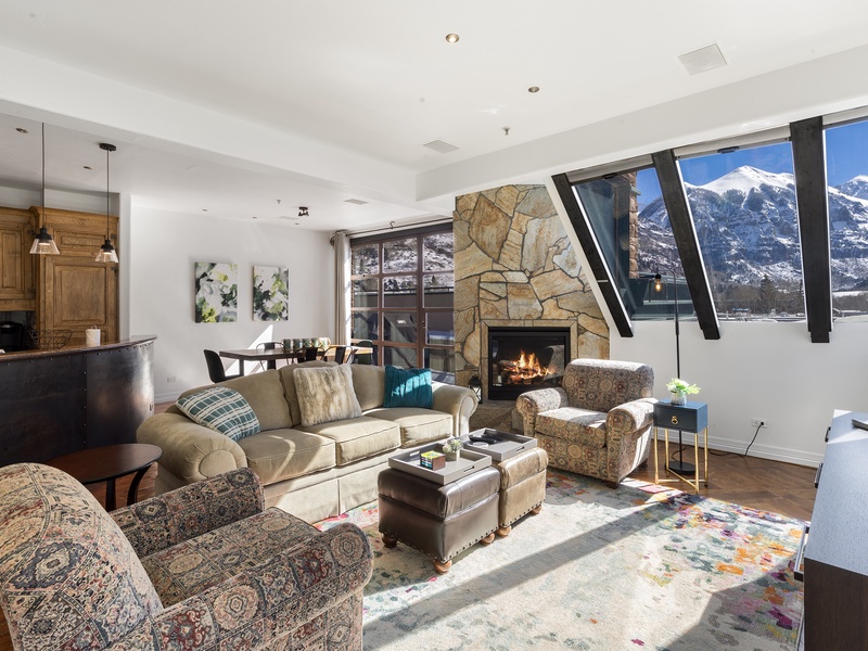 Perched high above DOWNTOWN TELLURIDE, the WINTERCROWN PENTHOUSE is an extraordinary blend of MODERN LUXURY and alpine charm. Offering sweeping MOUNTAIN VIEWS, unmatched SUNSHINE, and expansive OUTDOOR LIVING SPACES, this exclusive retreat captures the essence of Telluride’s breathtaking surroundings while delivering elevated comfort and style.